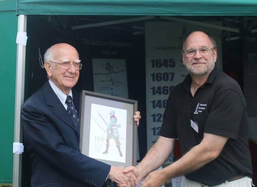 Vice chair Phil Steele accepts the award for outstanding battlefield society on NBS behalf from Sir Robert Worcester